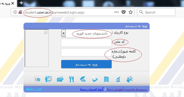 ۱- ورود به سایت student.uswr.ac.ir جهت ثبت نام در سامانه سما و در نهایت دریافت شماره دانشجویی برای ورود به سامانه بوستان .