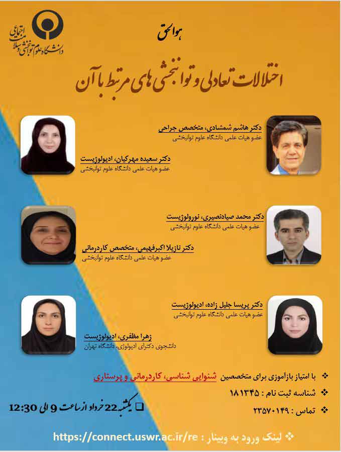 اخبار > برگزاری وبینار " اختلالات تعادلی و توانبخشیهای مرتبط با آن " / از ساعت 9 روز یکشنبه (22 خردادماه)
