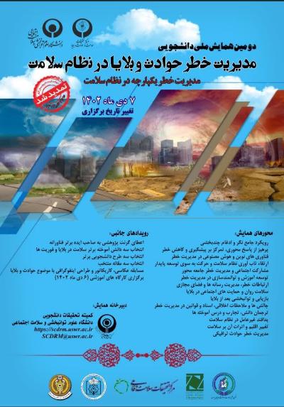 اخبار > دومین همایش ملی دانشجویی مدیریت خطر حوادث و بلایا در نظام سلامت 6 و 7 دی ماه برگزار می شود