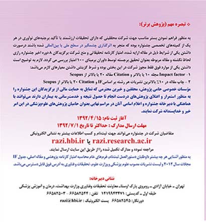 اخبار > نوزدهمین جشنواره تحقیقاتی علوم پزشکی رازی